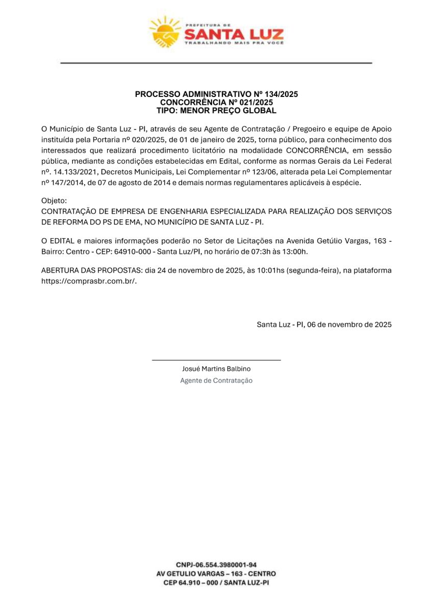AVISO DE CONCORRÊNCIA Nº 021/2025