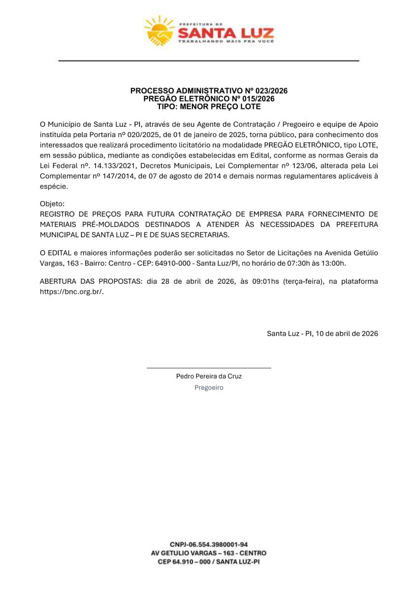 PREFEITURA MUNICIPAL DE SANTA LUZ