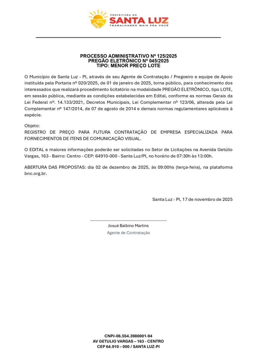 AVISO DE PREGÃO ELETRÔNICO Nº 045/2025